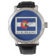 Uhr, Vintage Männeruhr mit schwarzem Lederarmband