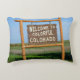 Ein Bild des Colorado Staat Line Schildes, das hell und farbenfroh ist und von Western Kansas von Holly Colorado kommt, mit grünem Gras und blauem Himmel, der auf einem AKZENTPILLOW ist.