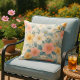 Bring vibrant color to your space with this floral, pink, blue, and white throw pillow. Pair it with blue or yellow pillows for a spring-ready porch! This outdoor pillow is both stylish and durable, perfect for adding a touch of nature to any outdoor setting. This pillow was created from a digital watercolor image.