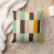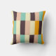 A colorful, geometric pattern with vertical stripes in teal, cream, peach, dark brown, and orange arranged in rows. The design conveys a retro, vibrant feel.