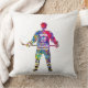 An artistic illustration of a female hockey player holding a stick, portrayed in bold and vibrant watercolor splashes. The energetic composition celebrates women in sports, blending strength, motion, and color in a modern expressive style. Perfect for hockey fans and lovers of dynamic sports art.