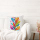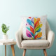 Brighten up your couch or favorite armchair with this cheerful throw pillow. The design showcases an abstract, multi-colored tree with dynamic, translucent leaves in shades of red, blue, green, and yellow. It adds a fresh, modern botanical aesthetic and a touch of joy to any interior decor.