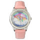Kinderuhr aus Edelstahl mit rosa Lederarmband