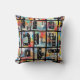 Colorful urban graffiti patchwork pattern throw pillow featuring bold abstract blocks, expressive brush strokes, scribbles, stars, and mixed-media textures in bright blue, yellow, pink, orange, and black. Energetic and edgy with a modern street art aesthetic, this seamless design is ideal for graffiti art lovers, maximalist style fans, creative teens, and contemporary art enthusiasts.