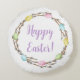 Colorful Watercolor Willow Wreath Happy Easter Rundes Kissen