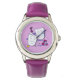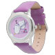 Uhr, Kinderuhr aus Edelstahluhr mit lila Lederarmband