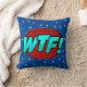 Comic Style Pop Art Retro Blue Aqua Red WTF Thread Kissen