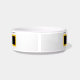 Pet Bowl white mit schwarz-goldgelben konzentrischen Kreisen Design mit "Y-NOT-ME CENTER OF THE UNIVERSE COLUMBIA, MO." über einem schwarzen und goldenen Rechteck. Im Zentrum des Kreises befindet sich das Große Siegel Missouri. Füttre dein Haustier in einer stilvollen Tierschale. Dieses Design ist ein Ausruf nach Columbia, Missouri, einer Stadt der Champions.