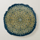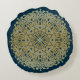 Ein Komplex Mandala in Blau- und Goldtönen auf dunkelblauem oder aquamarinem Hintergrund.