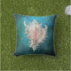 Eine zartrosa getönte Muschel, die so realistisch ist, dass man fast den Ozean hören kann, auf einem lebendigen ozeanblauen Hintergrund.