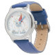 Kinderuhr aus Edelstahl mit blauem Lederarmband