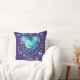Ein wunderschönes blaues Herz auf einem lila Sternenhimmel mit Mond und Sternbildern.