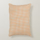 "A rectangular pillow displayed against a plain backdrop, shown in two views. It features a small orange and white plaid pattern, conveying a cozy and simple aesthetic."