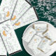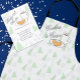 Cookies and cocoa gender neutral baby shower with gray snowflakes and winter green trees bordering a plate of chocolate chip cookies and a mug of hot chocolate