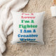 An epic I am a lover, a fighter, I am a creative writer slogan author self published fiction or non-fiction writer motto design great writer’s gift genre slogan writer pride cartoon style motto design book author pride bookish aesthetic motto novel deluxe unique home décor throw pillow cushion that’s perfect for writers of all genres. Get a fun author motto pillow today.
