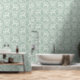 A whimsical, hand-drawn pattern featuring rococo-style carousel horses and delicate florals in a cool sage green palette. The dense, symmetrical layout and subtle plaster texture give this design a soft, romantic storybook feel that works beautifully for nurseries and timeless interior décor.