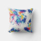 Dieses farbenfrohe künstlerische Wurfkissen hat einen einzigartigen, kreativen Regenbogen von abstrakten Aquarellfarben-Spritzern in Türkis, Blau, Gelb, Magenta , lila und Rot. Cool für Kinderzimmer oder für ein Kindergeburtstag Party.