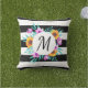 Modernes Kissen im Freien mit Blumenkranz in Aquarellfarbe auf schwarz-weiß gestreiftem Hintergrund. Passen Sie das Monogramm an, indem Sie aus vielen wunderbaren Schriftart auswählen.