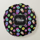 Coole, bunte Donuts schwarze Monogramm Rundes Kissen