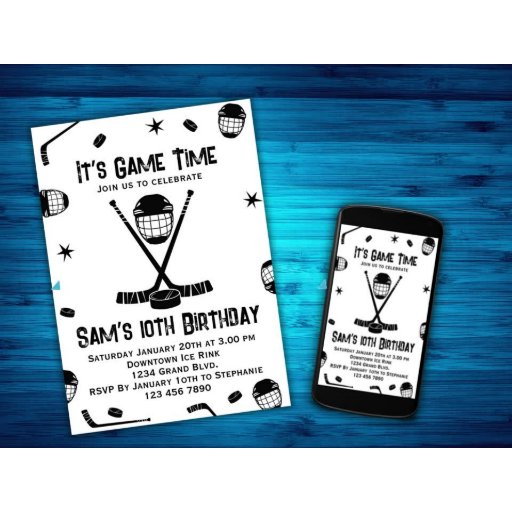 Dieses Eishockey Geburtstagsgeschenk ist Teil eines passenden Set von Geburtstagsparty-Accessoires. Ihr Geburtstagskind wird jeden Moment seines besonderen Tages genießen. Dieses Design zeichnet sich durch ein Schwarzweißmuster der Hockey-Ausrüstung, gut lesbare Schriftart und viel Platz aus, um all Ihre einzigartigen Informationen hinzuzufügen. Für besondere Designbedürfnisse können Sie sich an den Designer wenden, indem Sie eine E-Mail an choosehappystudio@yahoo.com schicken.