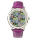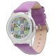 Uhr, Kinderuhr aus Edelstahluhr mit lila Lederarmband