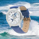 Kinderuhr aus Edelstahl mit blauem Lederarmband