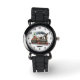 Uhr, Vintage Männeruhr mit schwarzem Lederarmband