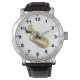 Uhr, Vintage Männeruhr mit schwarzem Lederarmband