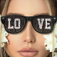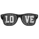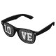 Coole schwarze Retro-Sonnenbrille mit dem Text "LIEBE". Große Sommer- oder Party-Brille für Damen und Herren.