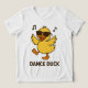 Ein lustiges Cartoon-Design einer gelben Ente mit Sonnenbrille und fröhlichem Tanzen. Ideal für T - Shirt, Tasse und Geschenke, die glückliche Stimmung und Spaß verbreiten.