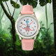 Kinderuhr aus Edelstahl mit rosa Lederarmband