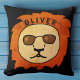 Cooler Löwenkopf Orange Black Kid`s Name Kissen. Ein cooler Löwe mit Sonnenbrille auf schwarzem Hintergrund. Fügen Sie Ihren Namen hinzu oder löschen Sie ihn.