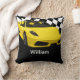 Coole Automobil-Theme Monogramm Kissen für Männer oder Jungen in einem Rennthema mit coolem Auto und kontrolliertem Flaggenhintergrund.