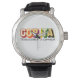 Uhr, Vintage Männeruhr mit schwarzem Lederarmband