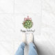 Diese Weihnachtsmatte zeigt Aquarellportraits von Mistelkugeln, die durch rote und weiße Bandbögen miteinander verbunden sind.