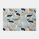 Niedliche Corgi-Hunde mit Brauntönen, roten und tri-Mantel-Farben mit Pfotenabzügen und Hundeknochenmuster.