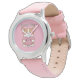 Kinderuhr aus Edelstahl mit rosa Lederarmband