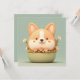This precious design showcases an adorable Corgi puppy head with a perfectly round, chubby face peeking out from a simple ceramic bowl. The artwork is created in a smooth 3D clay style, giving the puppy a soft, toy-like appearance with its signature orange and white markings, tiny pink tongue, and rosy cheeks. Surrounding the puppy are delicate, hand-sculpted clay flowers in a soft peach hue and gentle green leaves, all set against a calming sage green background. The minimalist and "kawaii" aesthetic creates a heartwarming and cheerful scene that is perfect for any dog lover who appreciates modern, clean character art. This charming Corgi postcard is an ideal way to send a cheerful spring greeting or a "thinking of you" note to a friend who loves gardening. You might choose to use this cute animal card for a baby shower invitation or to celebrate a new pet adoption with family members. It also makes a sweet decorative piece for a nursery or a bright addition to a teacher's desk as a small token of appreciation. This versatile design is also an excellent choice for floral-themed birthday party announcements, pet-friendly event invites, or as a heartwarming way to share a short message of kindness with a neighbor.