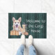 Begrüßen Sie Ihre Gäste mit unserem Corgi-Welpen in der Herbstfußmatte, die einen junges Mädchen- und Corgi-Cartoon kennzeichnet. Entworfen durch www.zazzle.com/CorgiGifts