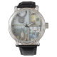 Uhr, Vintage Männeruhr mit schwarzem Lederarmband