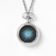 Kosmische Kunst mit hellblauen Fraktal-Wirbel, die wie eine wirbelnde Galaxie im Weltraum zu leuchten scheint.