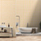 Die karierte Tapete aus weißer Baumwolle, die in Rosa und Gold kariert ist, verleiht jedem Zimmer, insbesondere dem Kinderzimmer oder einem kleinen Mädchenzimmer, einen wunderbar kühnen Pop. Jeder Einzelne misst etwa 2". Originelle Kunst und Design von Annie Montgomery Design.