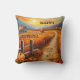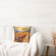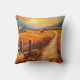 Farbenvolles künstlerisches Kissen mit einer Herbstlandschaft mit einem Bauernhof und Kürbissen bei Sonnenuntergang. Das Hotel ist ideal, um einen Erntedank zu schaffen und im Herbst einen gemütlichen und einladenden Stil zu genießen.