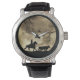 Uhr, Vintage Männeruhr mit schwarzem Lederarmband
