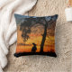 Das farbenfrohe Dekor dieses Kissens im Landhausstil besticht durch einen Cowboy und ein Pferd bei Sonnenuntergang, das zu den letzten hartnäckigen Rudern zählt. Eine Kultureiche umrahmt ihn.