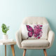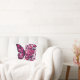 a beautiful bouquet of pink flowers, including large peony-like blooms and other smaller pink flowers The flowers are surrounded by dark green leaves and accented by a striking, large pink and black butterfly. The overall effect is a vibrant, eye-catching floral arrangement with a touch of whimsy from the butterfly element.