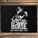Das amerikanische Pferdedesign. Cowboy, Wild West, Western Grafik Design mit einem laufenden Viertelpferd und Western Stil Buchstaben. Verfügbar für viele Produkte. Mit diesem stilvollen Western-Design zeigen Sie Ihre Liebe für diese ikonischen Pferde.