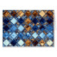 Schlüsselwörter: Marineblau, Himmelblau, Cowboybraun, Tan, Quadrate, Fliesen, Mosaik, einzigartig, interessant, Muster, ursprünglicher digitaler Art.