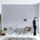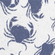Blau-weiße Krabbenküstenmuster in einem Lino-Blockdruckstil. Originelle Kunst von Nic Squirrell. Ideal für Ihre Küche, Strandhaus, Meeresfrüchte Restaurant oder Küstenkaffee.