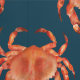 Crab illustrierte Tapete mit dunkelblauem Hintergrund. Ideal für Meeresvibes in jedem Strandhaus oder Wassersport-Dekor. Matching-Elemente verfügbar. Originale Kunst von Künstlern eigene Illustrationen. Bitte nutzen Sie den unten stehenden Button für die Nachricht, um weitere Anpassungen und spezielle Anfragen zu erhalten. © Zoe Chapman Design